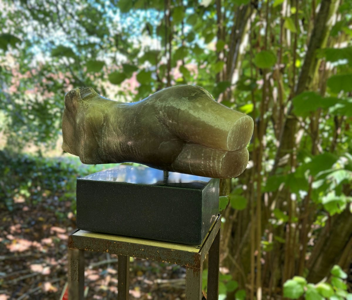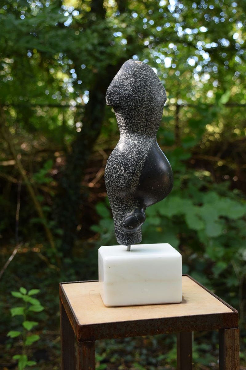 Bij het steenhouwen staan we tegenover een bestaande, vaste vorm, een gestolde ruimte kan je zeggen. Door het weghalen van materiaal komen we tot nieuwe vormen, vanuit het visualiseren in die gestolde ruimte. Steen heeft een grens, een huid, met elke slag met de beitel benadrukken we de huid.. de gevormde steen blijft altijd ook de berg waar het uit komt.