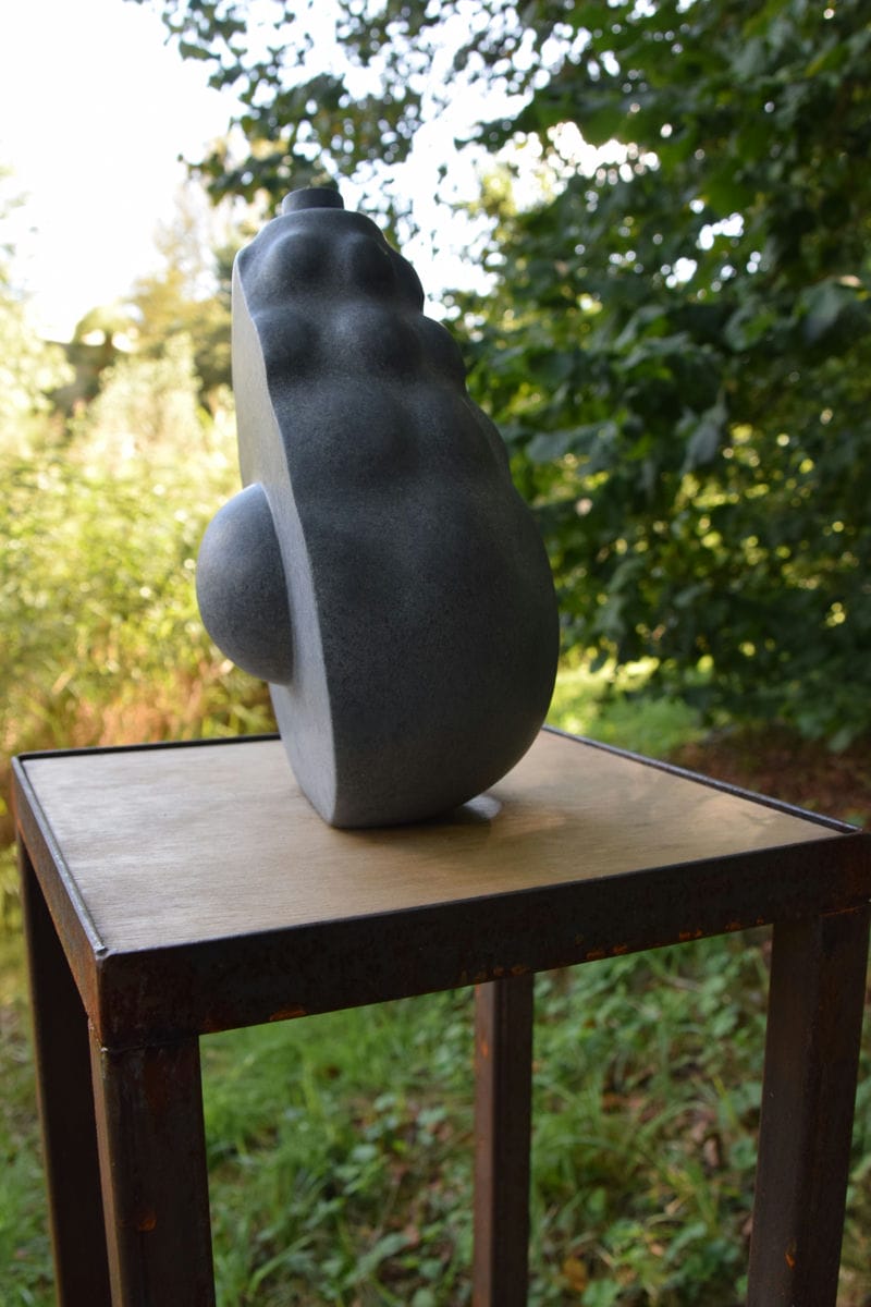 Bij het boetseren met een plastisch materiaal bouw je op. Door aanbrengen en weghalen en nog meer opbrengen en weghalen ontstaat de vorm, vanuit het eigen lichaam. Het blijft altijd in beweging.