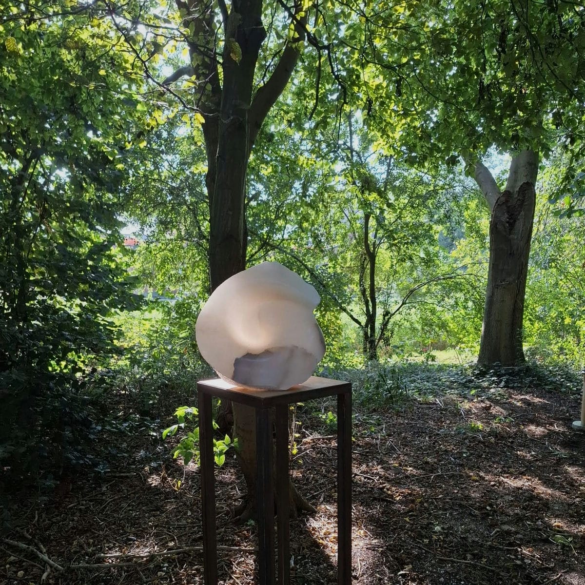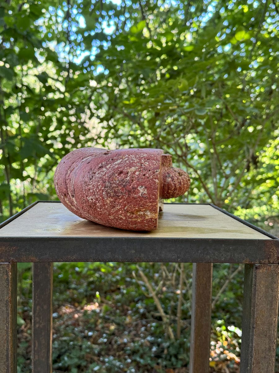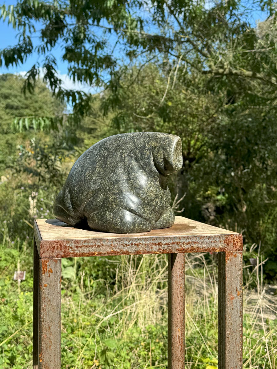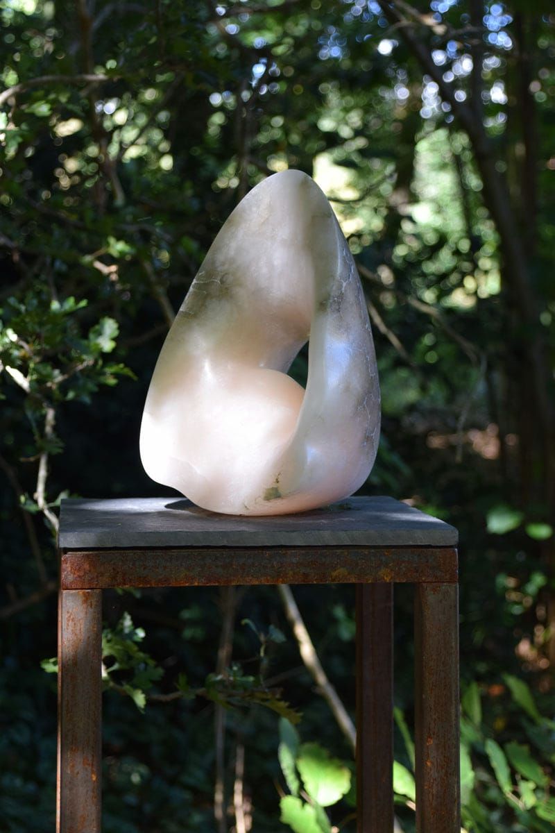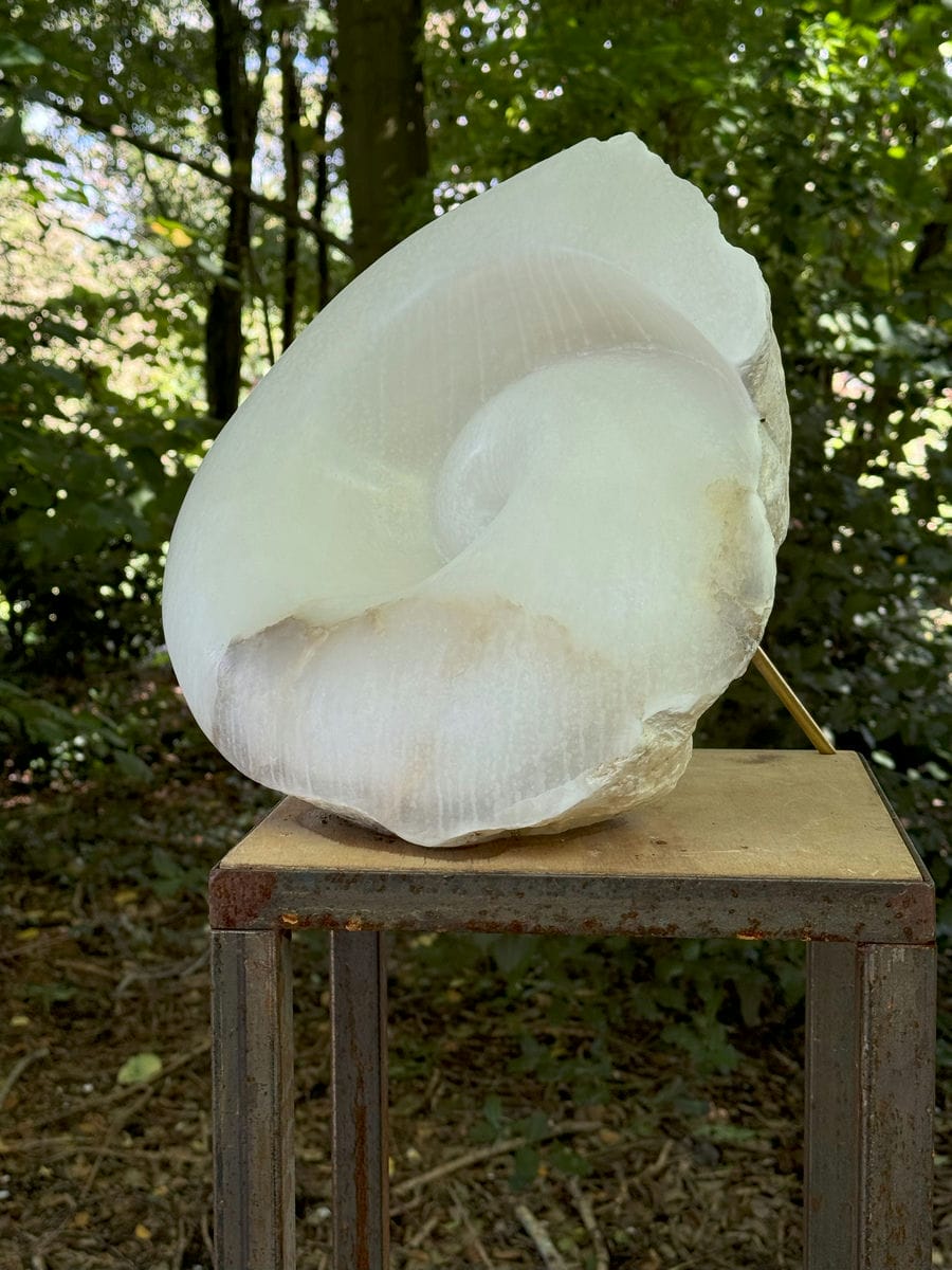 Bij het steenhouwen staan we tegenover een bestaande, vaste vorm, een gestolde ruimte kan je zeggen. Door het weghalen van materiaal komen we tot nieuwe vormen, vanuit het visualiseren in die gestolde ruimte. Steen heeft een grens, een huid, met elke slag met de beitel benadrukken we de huid.. de gevormde steen blijft altijd ook de berg waar het uit komt.